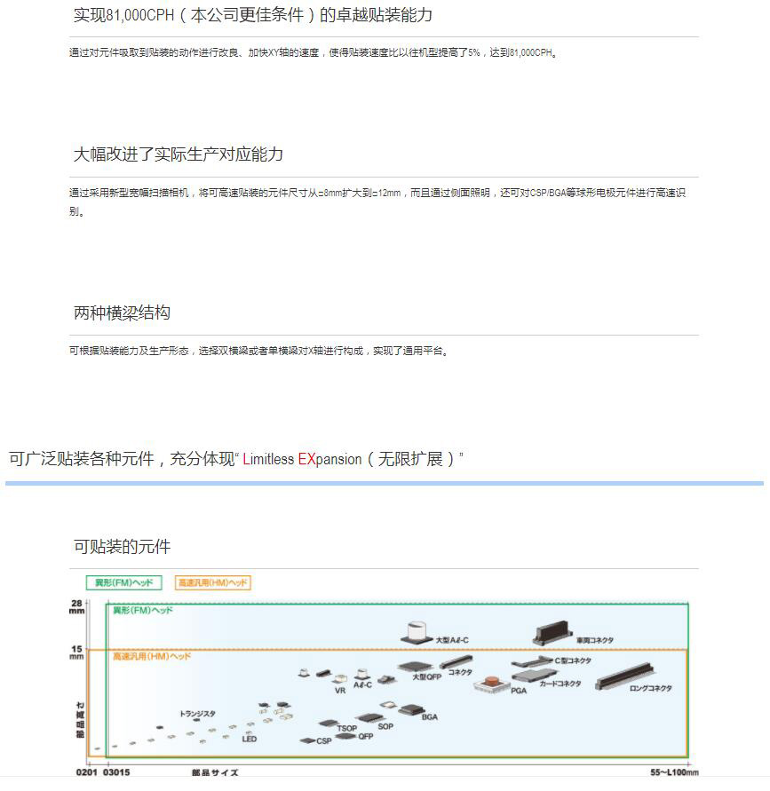 2.大幅升級“高速通用一體化貼裝頭”,在世界同級別產(chǎn)品中更快的萬能型表面貼片機(jī)。