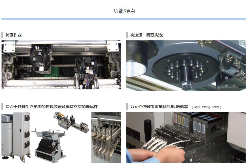 1.采用轉塔式貼裝頭,實現單一貼裝頭解決方案,使得高速性、通用性、高生產率得到進一步改進。