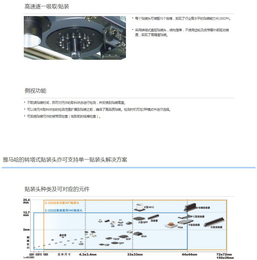 5.雅馬哈的轉塔式貼裝頭亦可實現1個貼裝頭支持貼裝多種元件。