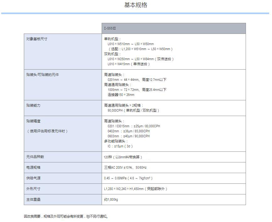 Σ-G5SⅡ高端模塊貼片機 1.采用轉塔式貼裝頭,實現單一貼裝頭解決方案,使得高速性、通用性、高生產率得到進一步改進。2.轉塔式貼裝頭實現:1個貼裝頭支持貼裝多種元件,速度、通用性和生產率進一步提升。3.實現高效生產。4.實現高速、高精度、高品質貼裝。5.雅馬哈的轉塔式貼裝頭亦可實現1個貼裝頭支持貼裝多種元件。6.裝配…